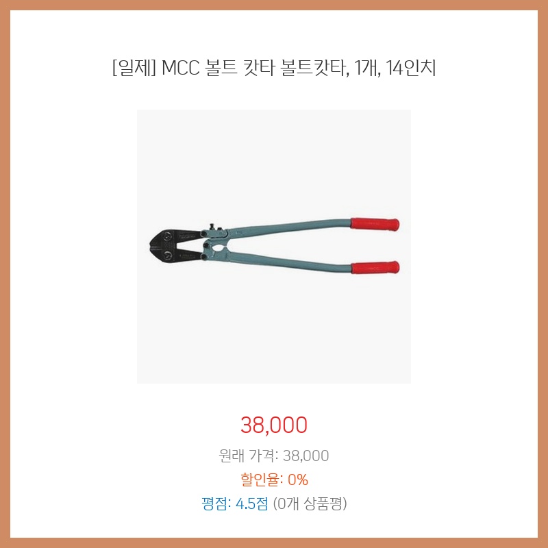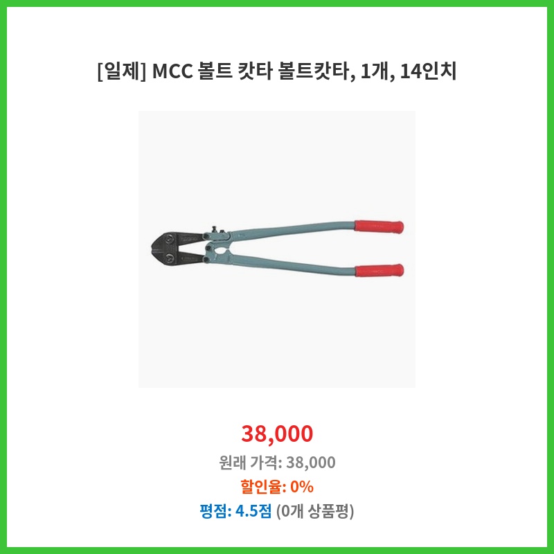 튼튼한 일제 MCC 볼트캇타가 필요했습니다. 14인치라 작업 범위가 넓고, 내구성이 뛰어나 오래 사용할 수 있을 것 같아 구매했습니다. 국산 제품보다 품질이 좋다는 평이 많아 선택했습니다.