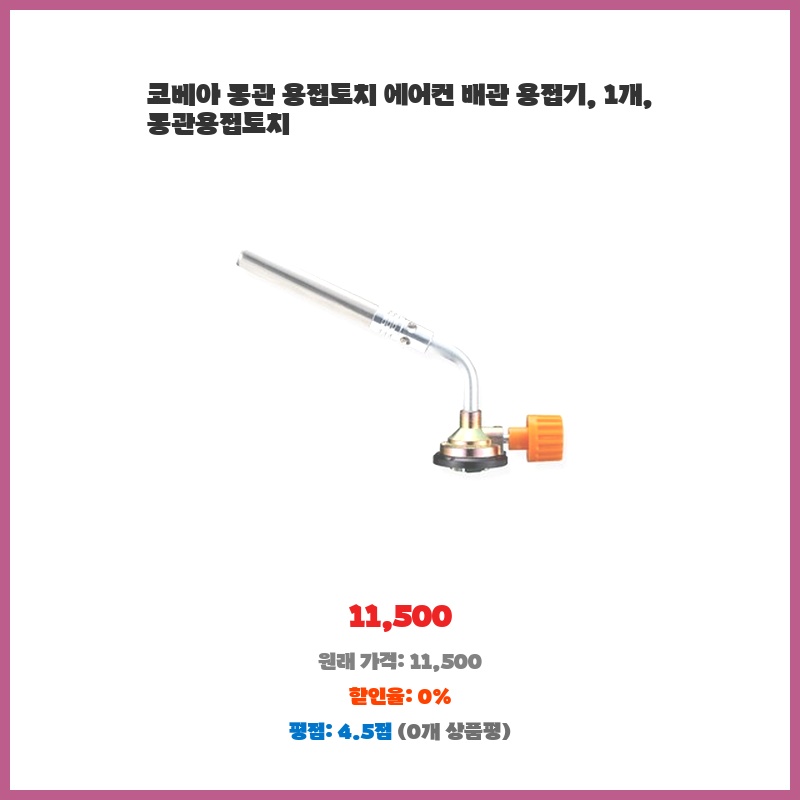 에어컨 배관 작업을 직접 해보고 싶어서 구매했습니다. 가격이 저렴하면서 동관 용접에 필요한 기본 기능을 갖춰 편리하게 사용할 수 있을 것 같았습니다. 휴대성도 좋아 보였고요.