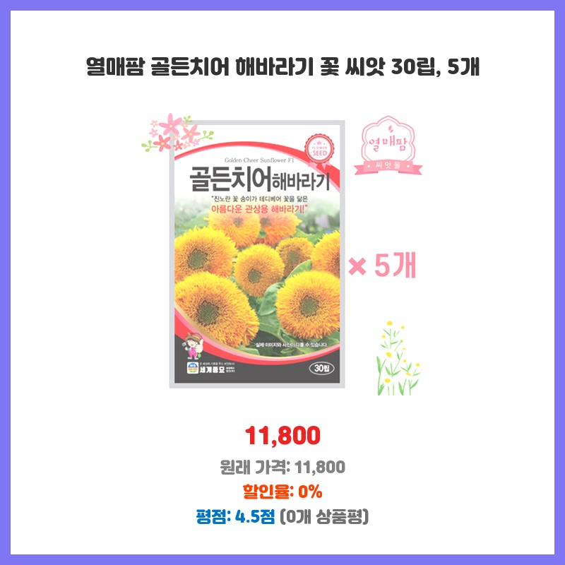 열매팜 골든치어 해바라기 꽃 씨앗 30립, 5개