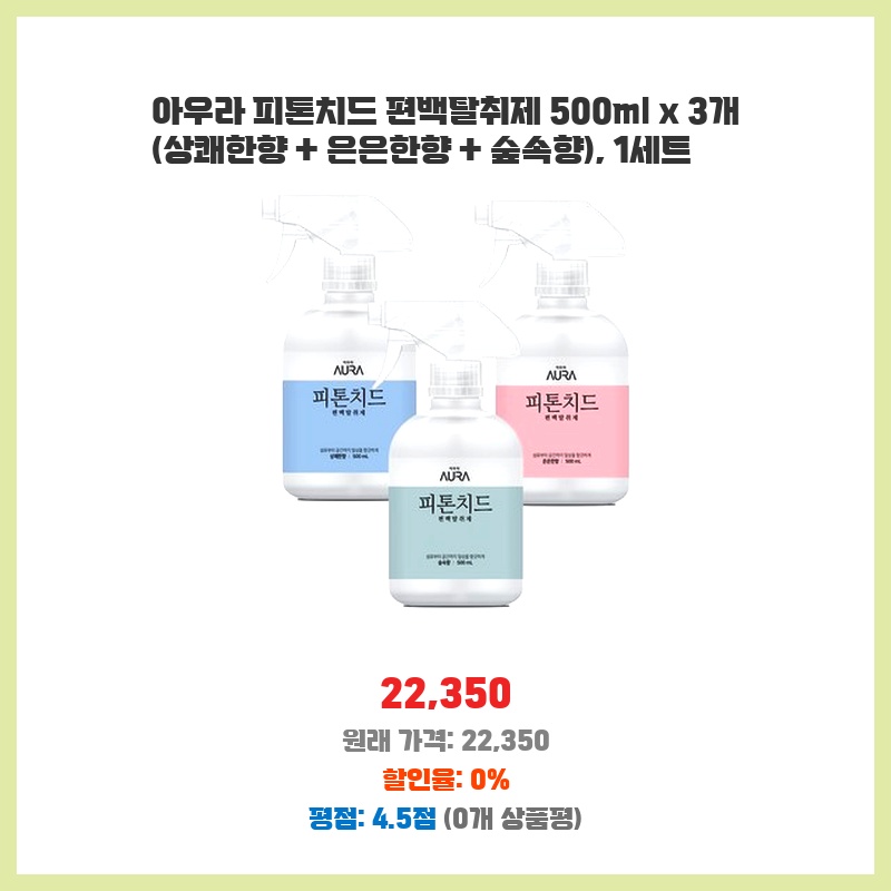 아우라 피톤치드 편백탈취제 500ml x 3개 (상쾌한향 + 은은한향 + 숲속향), 1세트