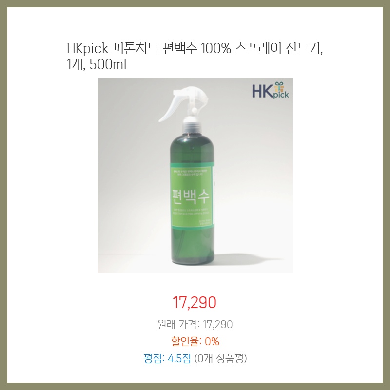 피톤치드, 편백수스프레이, 진드기퇴치, 천연살균, HKpick, 500ml, 편백나무