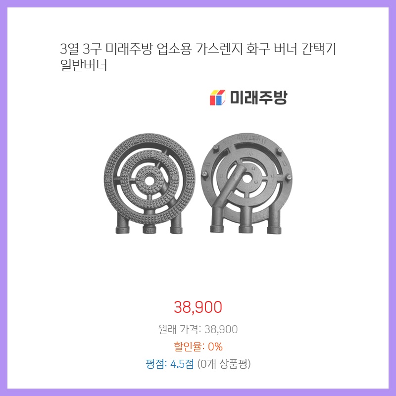 3열 3구 미래주방 업소용 가스렌지 화구 버너 간택기 일반버너