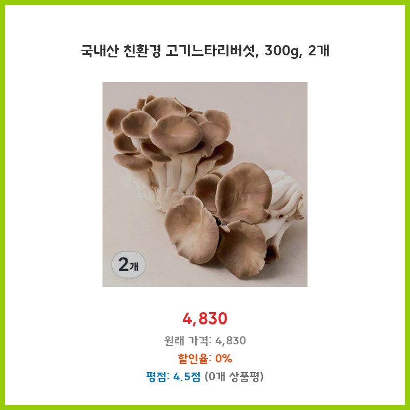 국내산 친환경 고기느타리버섯, 300g, 2개