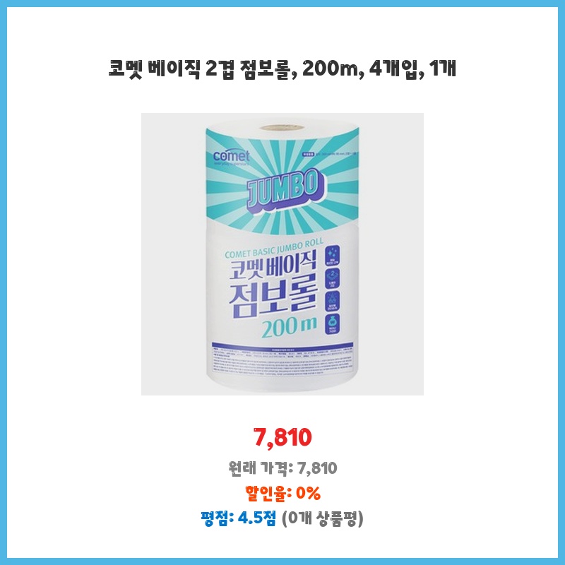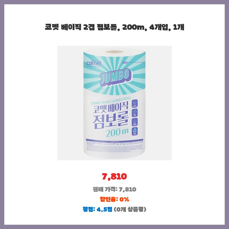 코멧 베이직 2겹 점보롤, 200m, 4개입, 1개