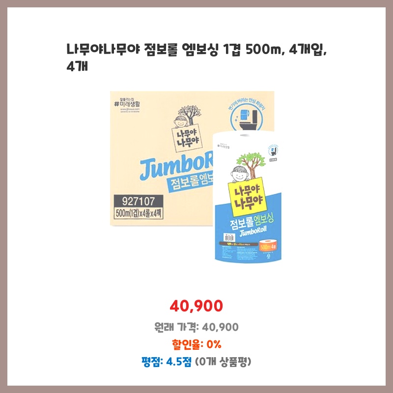 나무야나무야 점보롤 엠보싱 1겹 500m, 4개입, 4개