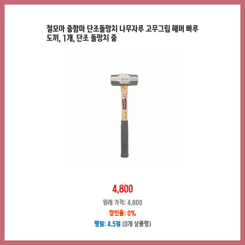 단단한 단조 제품이라 내구성이 좋아 오래 쓸 수 있을 것 같아 구매했습니다. 나무자루와 고무그립으로 작업 시 충격을 줄여주고, 적당한 무게감으로 작업 효율도 높을 것 같습니다. 가격 대비 품질이 좋아 보였습니다.
