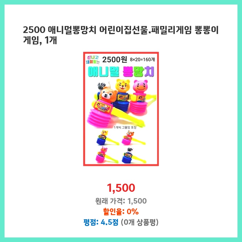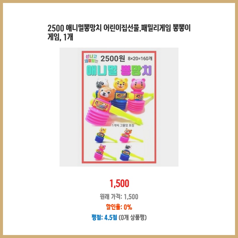 2500 애니멀뽕망치 어린이집선물.패밀리게임 뽕뽕이 게임, 1개