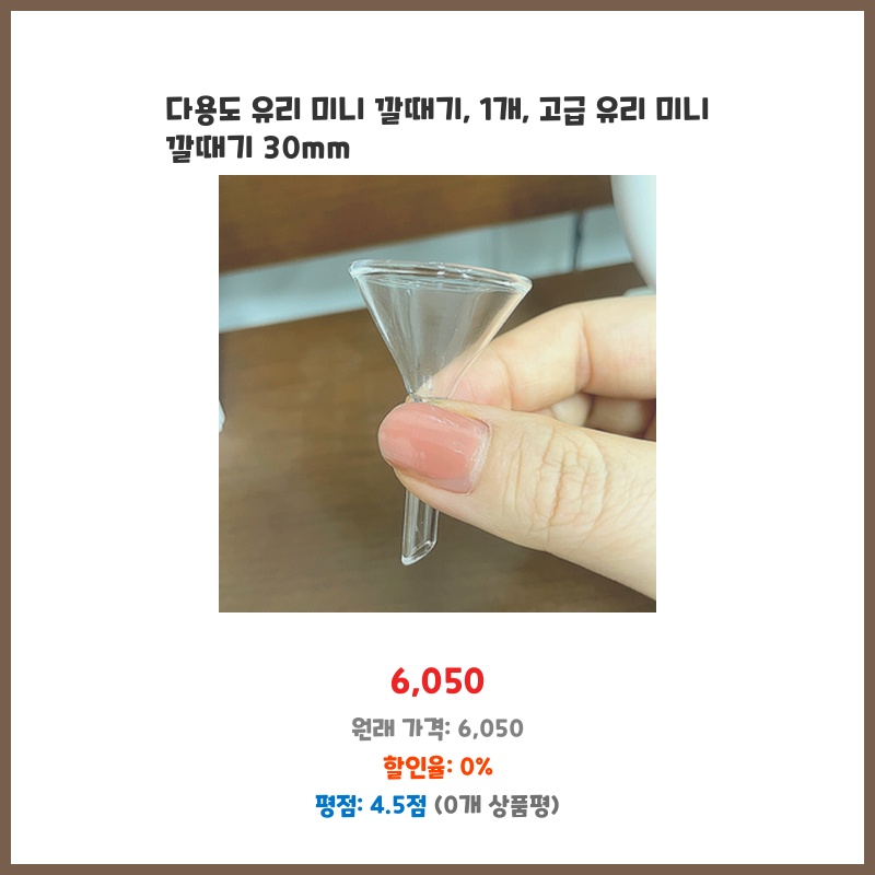 소량의 액체를 정확하게 옮겨야 할 일이 많아 구매했습니다. 유리 재질이라 위생적이고, 작은 사이즈라 보관도 용이합니다. 30mm 사이즈도 적당해서 다양한 용기에 사용 가능합니다.