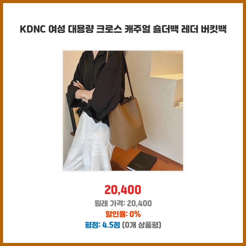 KDNC 여성 대용량 크로스 캐주얼 숄더백 레더 버킷백