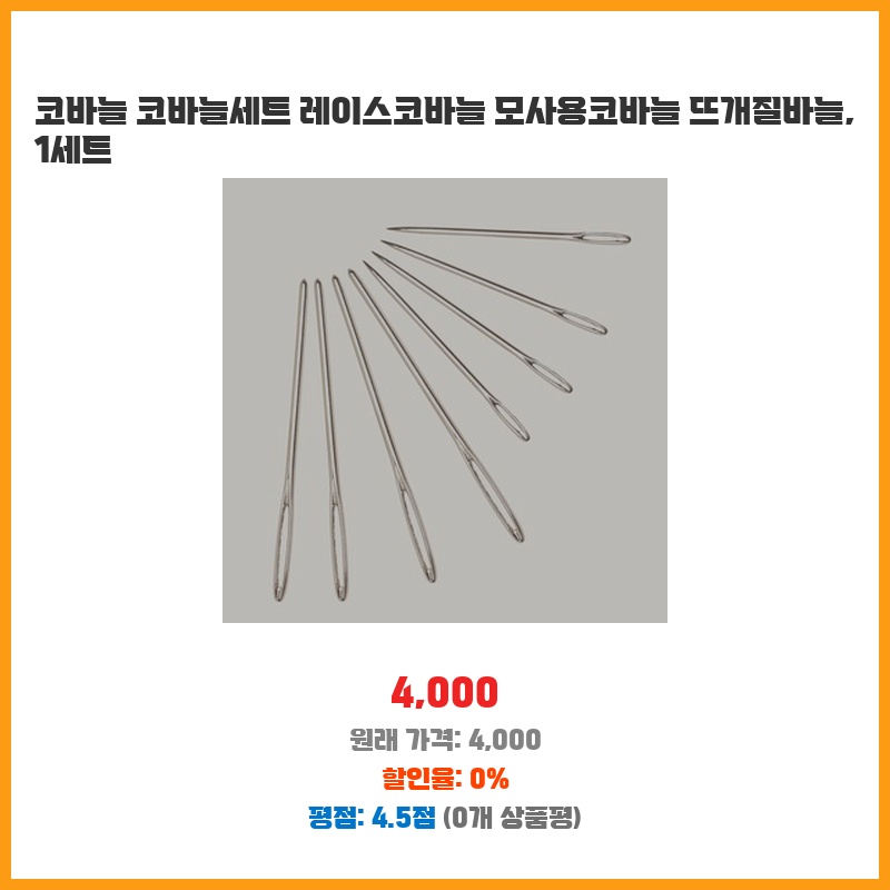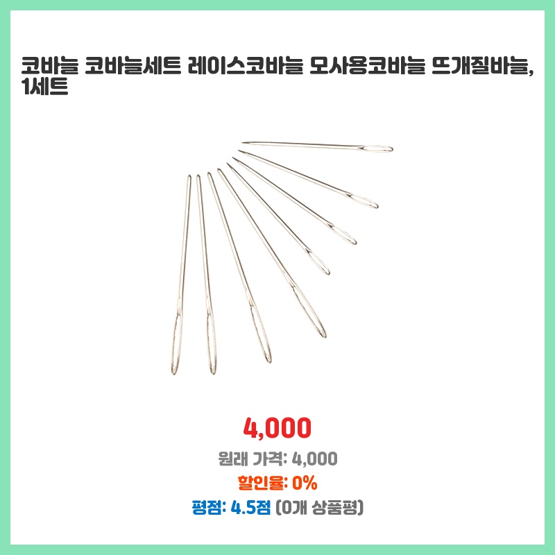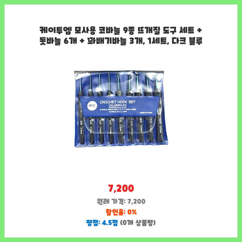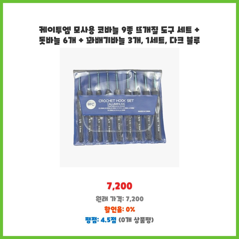 코바늘의 크기와 재질을 확인하고 구매하세요. 본인에게 맞는 크기의 코바늘을 선택하는 것이 중요합니다.