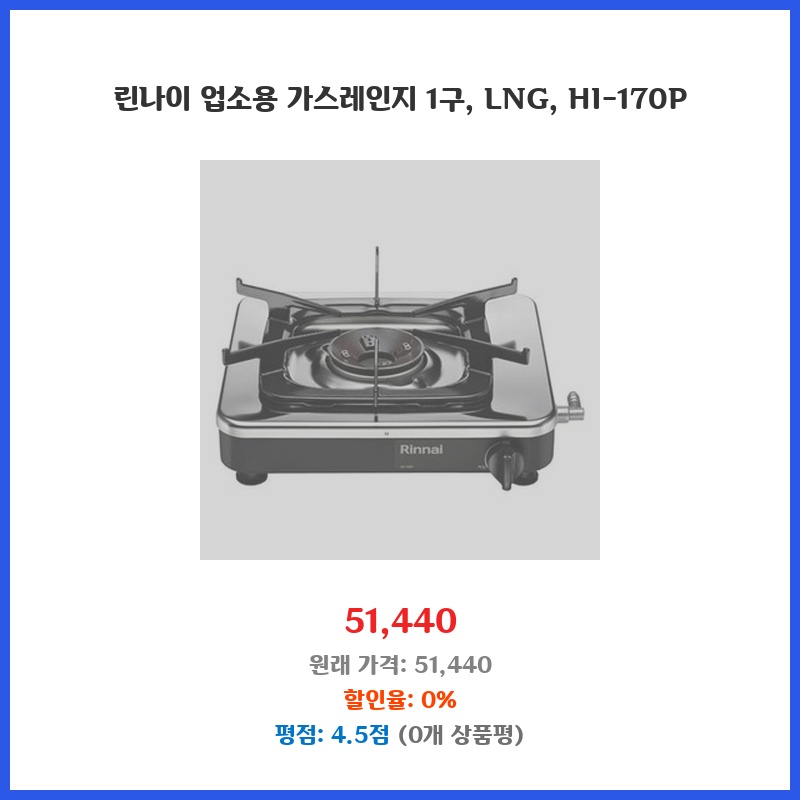 린나이가스레인지, 업소용가스레인지, 1구가스레인지, HI-170P, LNG가스레인지, 린나이HI-170P, 가스렌지