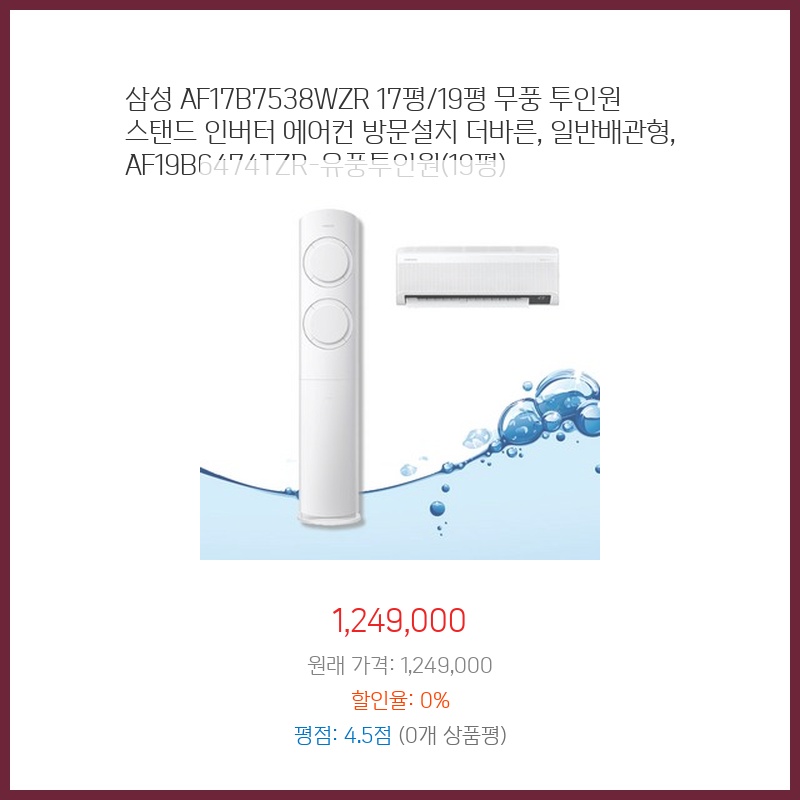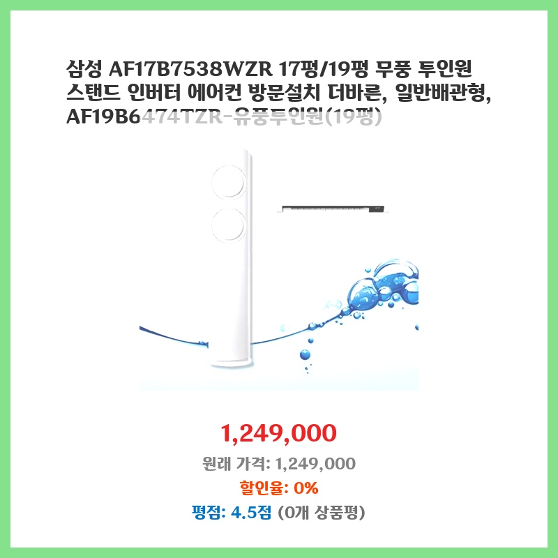 삼성 AF17B7538WZR 17평/19평 무풍 투인원 스탠드 인버터 에어컨 방문설치 더바른, 일반배관형, AF19B6474TZR-유풍투인원(19평)