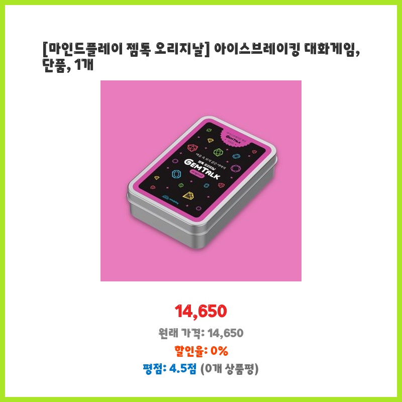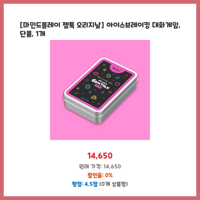 [마인드플레이 젬톡 오리지날] 아이스브레이킹 대화게임, 단품, 1개