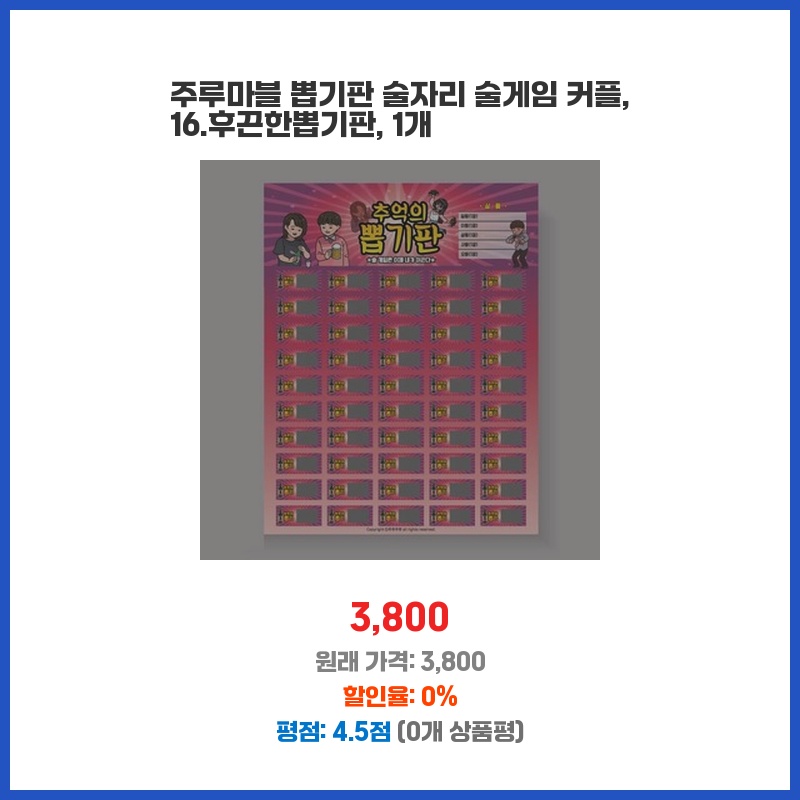 주루마블 뽑기판 술자리 술게임 커플, 16.후끈한뽑기판, 1개
