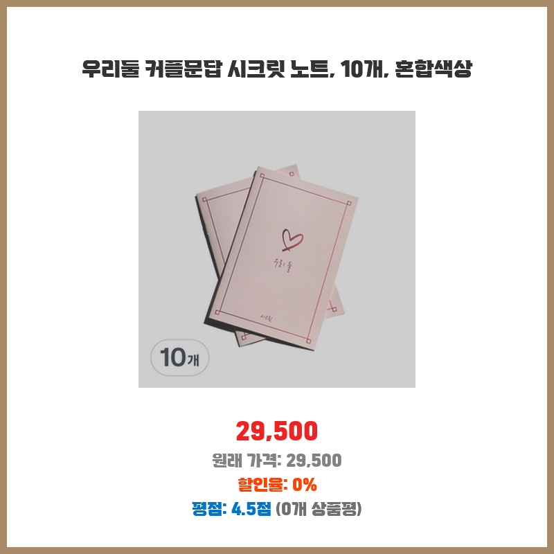 우리둘 커플문답 시크릿 노트, 10개, 혼합색상