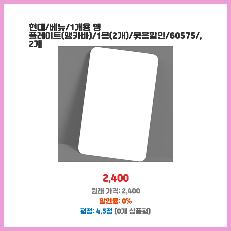 현대/베뉴/1개용 맹 플레이트(맹카바)/1봉(2개)/묶음할인/60575/, 2개