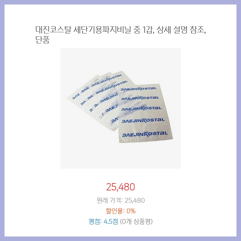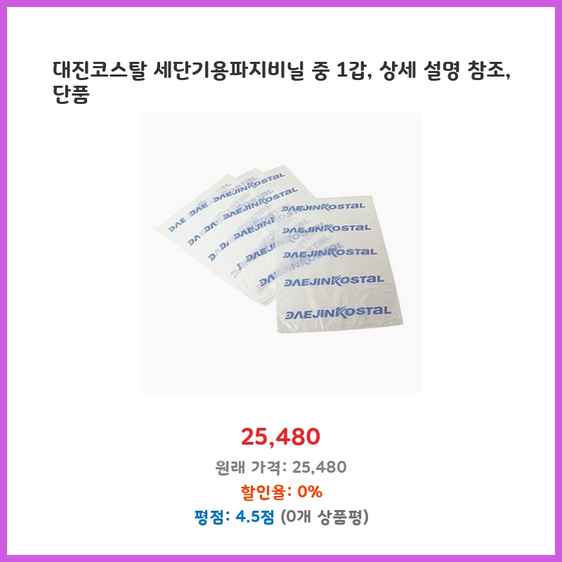 세단기 작업량이 많아 파지비닐 소모가 잦습니다. 대진코스탈 제품은 품질이 좋고, 1갑 단위 구매로 필요한 만큼만 구입할 수 있어 경제적입니다. 기존에 사용하던 제품보다 내구성이 좋아 보여 구매했습니다.