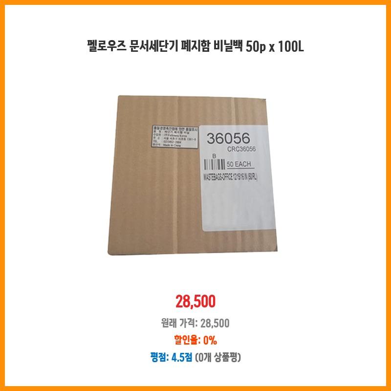 문서 파쇄 후 폐기물 처리가 간편해져서 구매했습니다. 50개의 비닐백이라 한 번에 많은 양을 처리할 수 있고, 100L 용량으로 오래 사용할 수 있어 경제적입니다. 펠로우즈 제품이라 믿음직스럽습니다.