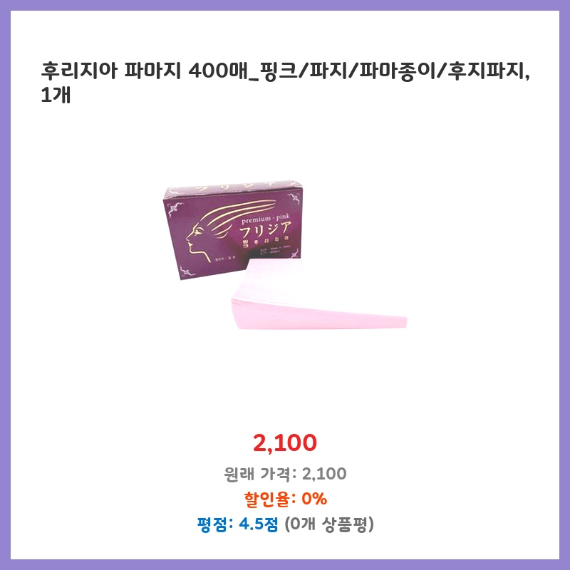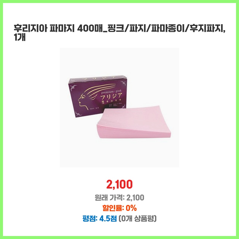 핑크색 파마지가 필요했는데, 400매에 2100원이라는 저렴한 가격이 매력적이었습니다. 후지 파마지라 품질도 믿을 수 있을 것 같아 구매했습니다. 종이 두께도 적당하고, 파마 작업에 무리가 없어 만족스러웠습니다.