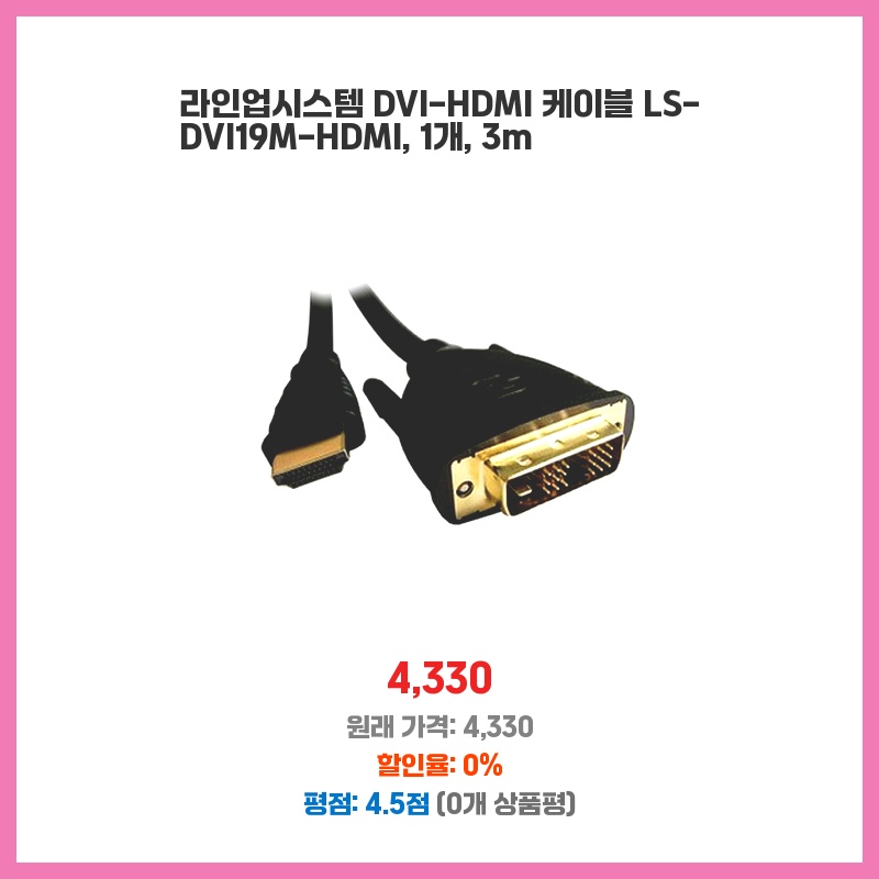 3m 길이의 DVI-HDMI 케이블이 필요했는데, 라인업시스템 제품이 가격 대비 괜찮은 평가를 받아 구매했습니다. 길이도 충분하고, 선의 품질도 나쁘지 않아 만족스럽습니다. 설치도 간편했습니다.