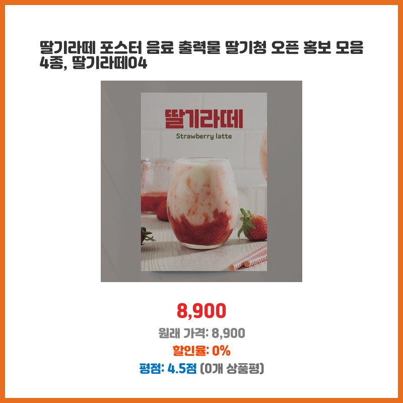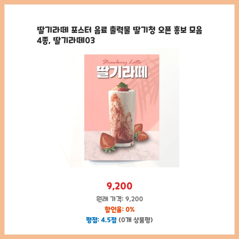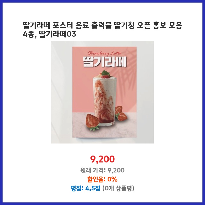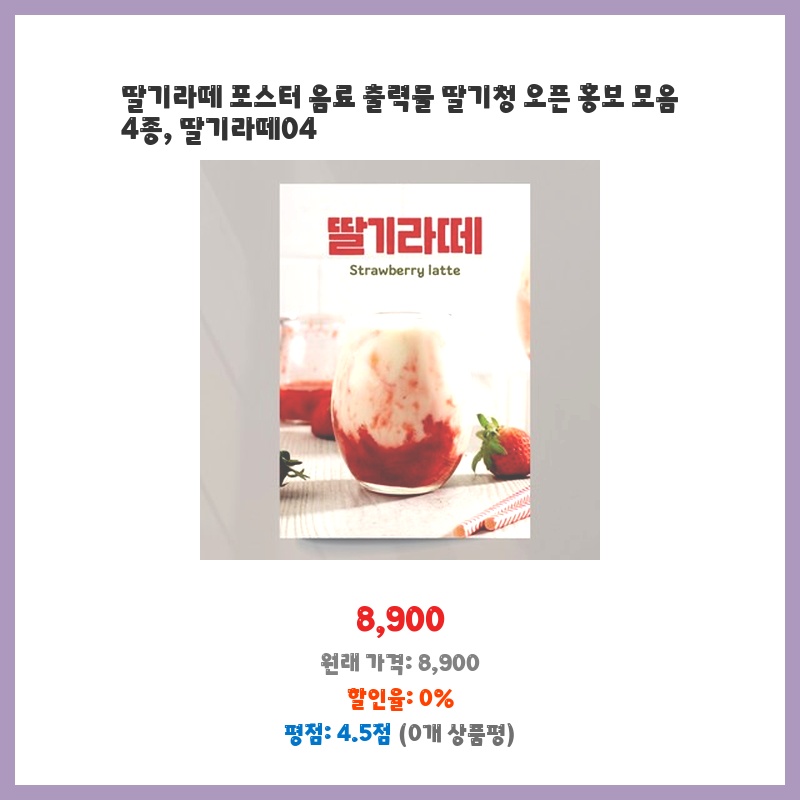 딸기라떼 홍보에 딱 맞는 예쁜 디자인이었어요! 다양한 디자인 덕분에 고민은 됐지만, 결과적으로 매장 분위기와 잘 어울려 만족합니다. 손님들의 반응도 좋네요.