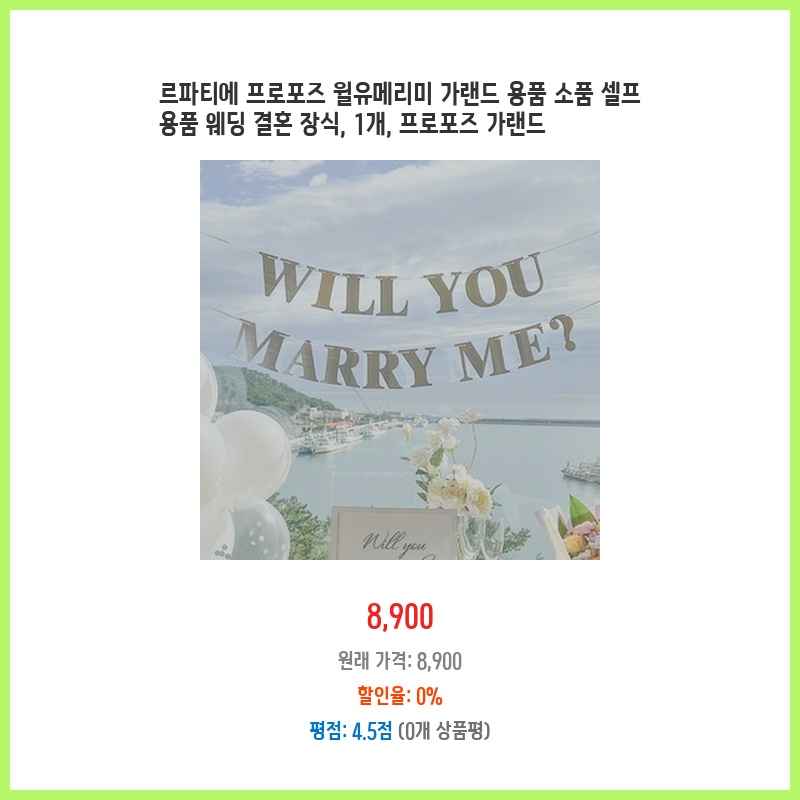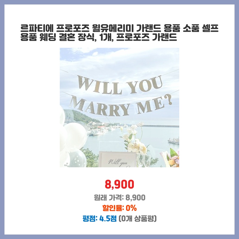 프로포즈가랜드, 윌유메리미, 결혼프로포즈, 웨딩소품, 프로포즈용품, 셀프웨딩, 가랜드