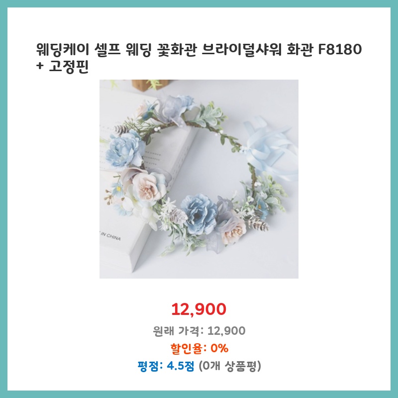웨딩케이 셀프 웨딩 꽃화관 브라이덜샤워 화관 F8180 + 고정핀