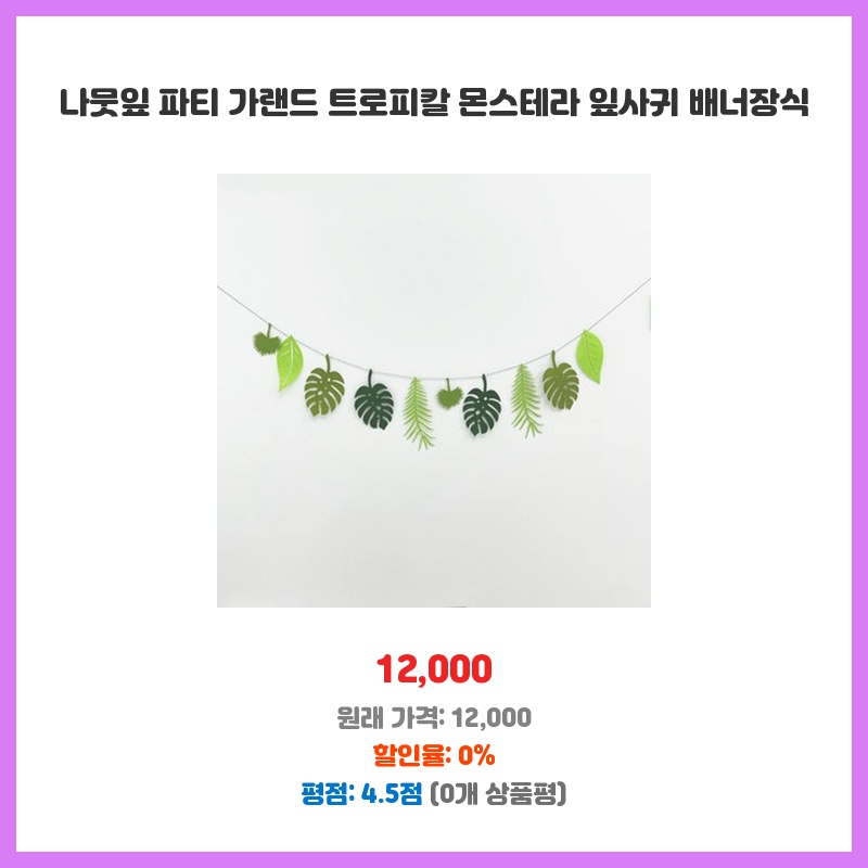 나뭇잎 파티 가랜드 트로피칼 몬스테라 잎사귀 배너장식