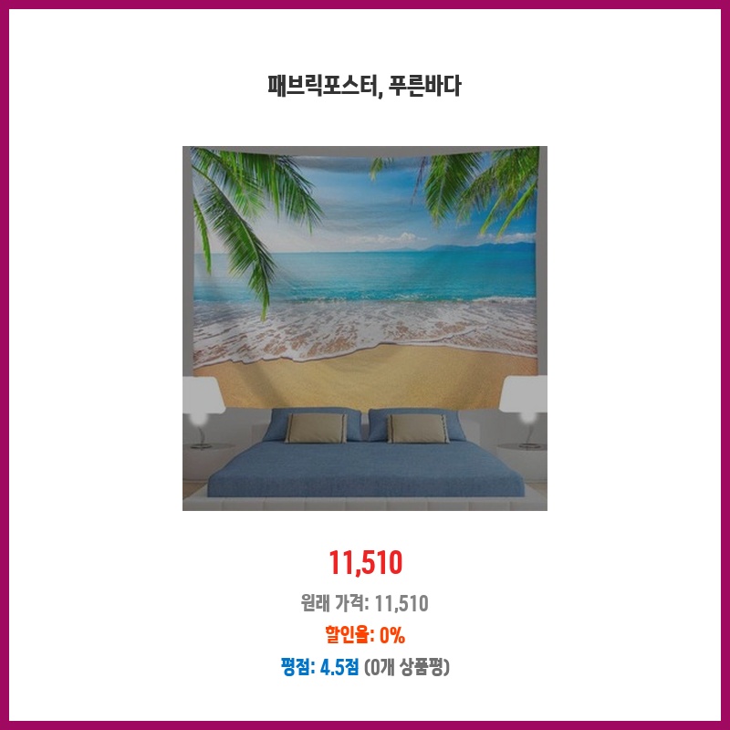 푸른 바다 풍경이 마음에 들어 구매했습니다. 색감이 선명하고, 캔버스 천이라 질감도 좋습니다. 인테리어 소품으로 활용하기에 크기와 디자인 모두 만족스러워요. 가격 대비 품질이 좋습니다.