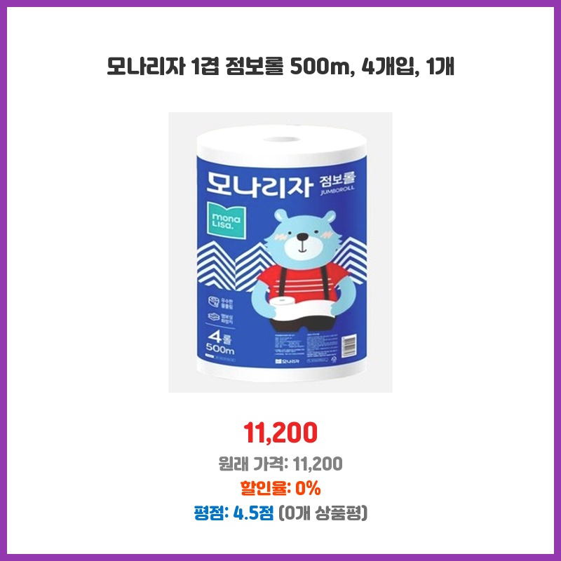 모나리자화장지, 점보롤화장지, 500m화장지, 4롤화장지, 1겹화장지, 대용량화장지, 화장지추천