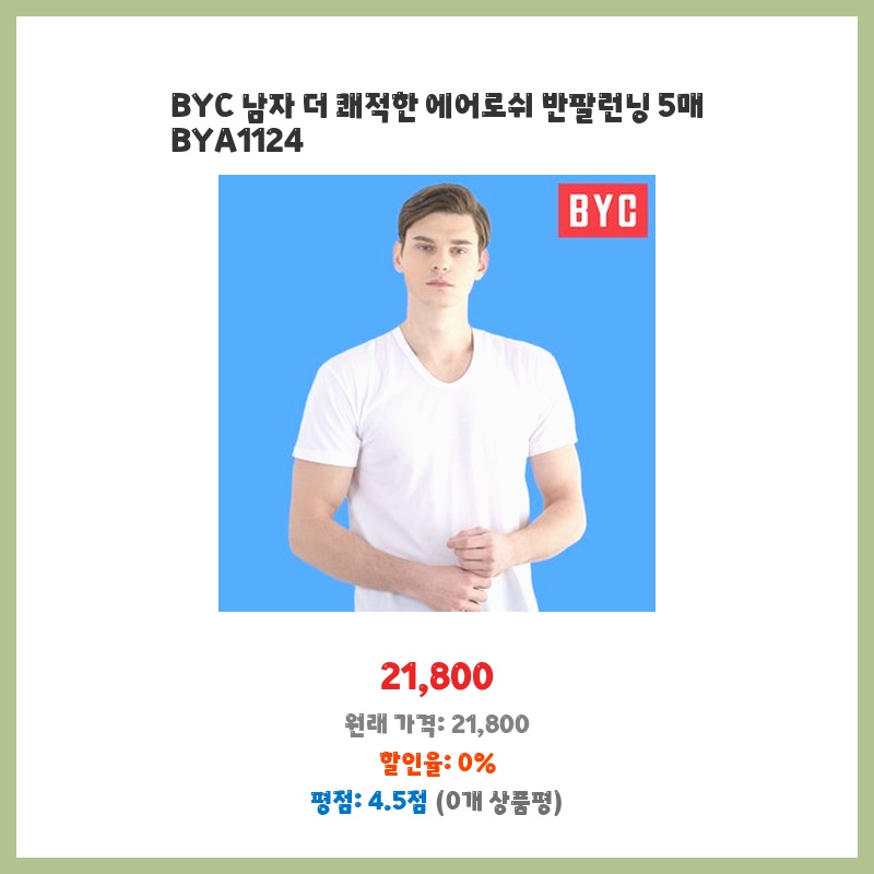 BYC 남자 더 쾌적한 에어로쉬 반팔런닝 5매 BYA1124