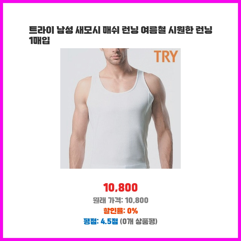 트라이 남성 새모시 매쉬 런닝 여름철 시원한 런닝 1매입