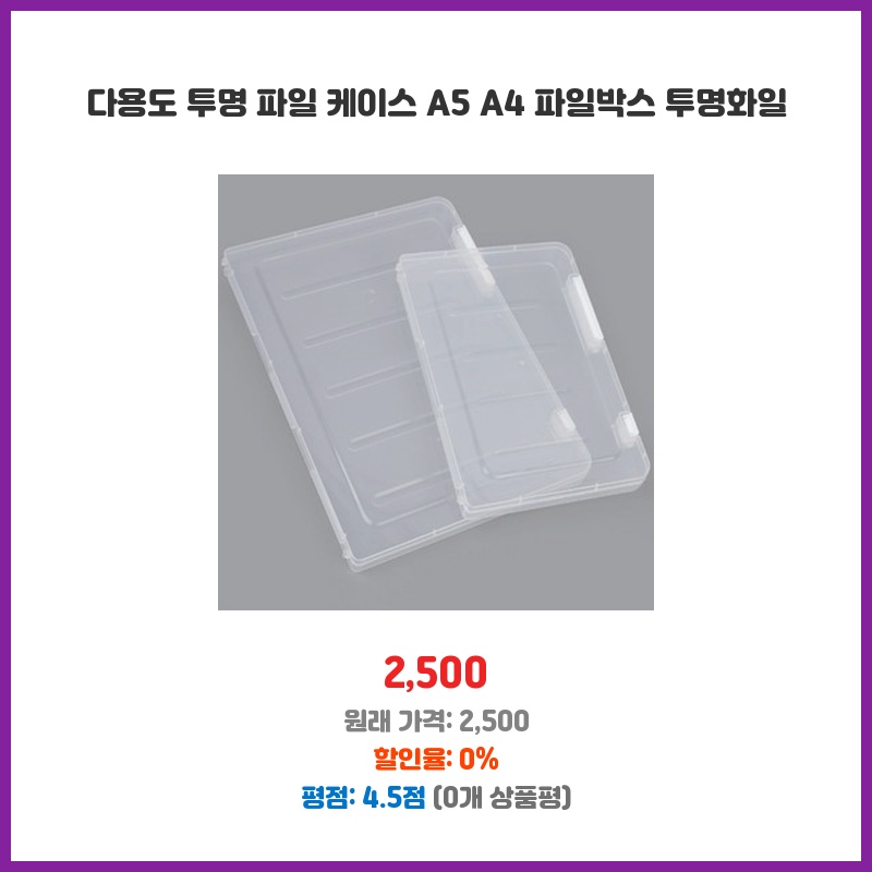 다용도 투명 파일 케이스 A5 A4 파일박스 투명화일