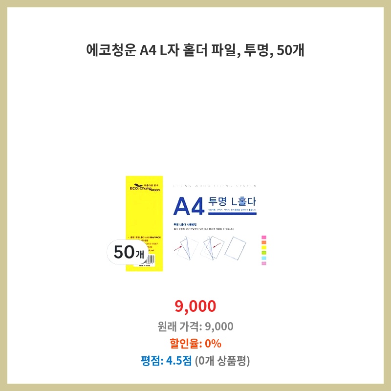 에코청운, A4파일홀더, L자홀더, 투명파일, 50개입, 파일홀더, 사무용품